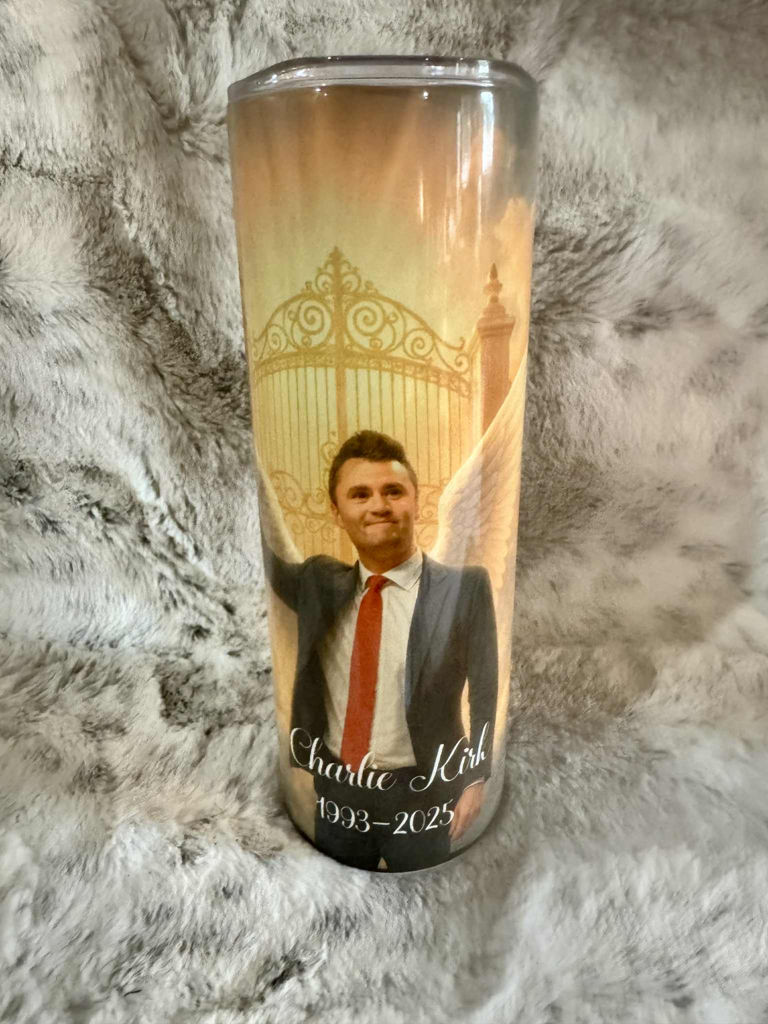 Charlie Kirk Angel Heaven RIP "Jesus Defeated Death So You Can Live" Tumbler